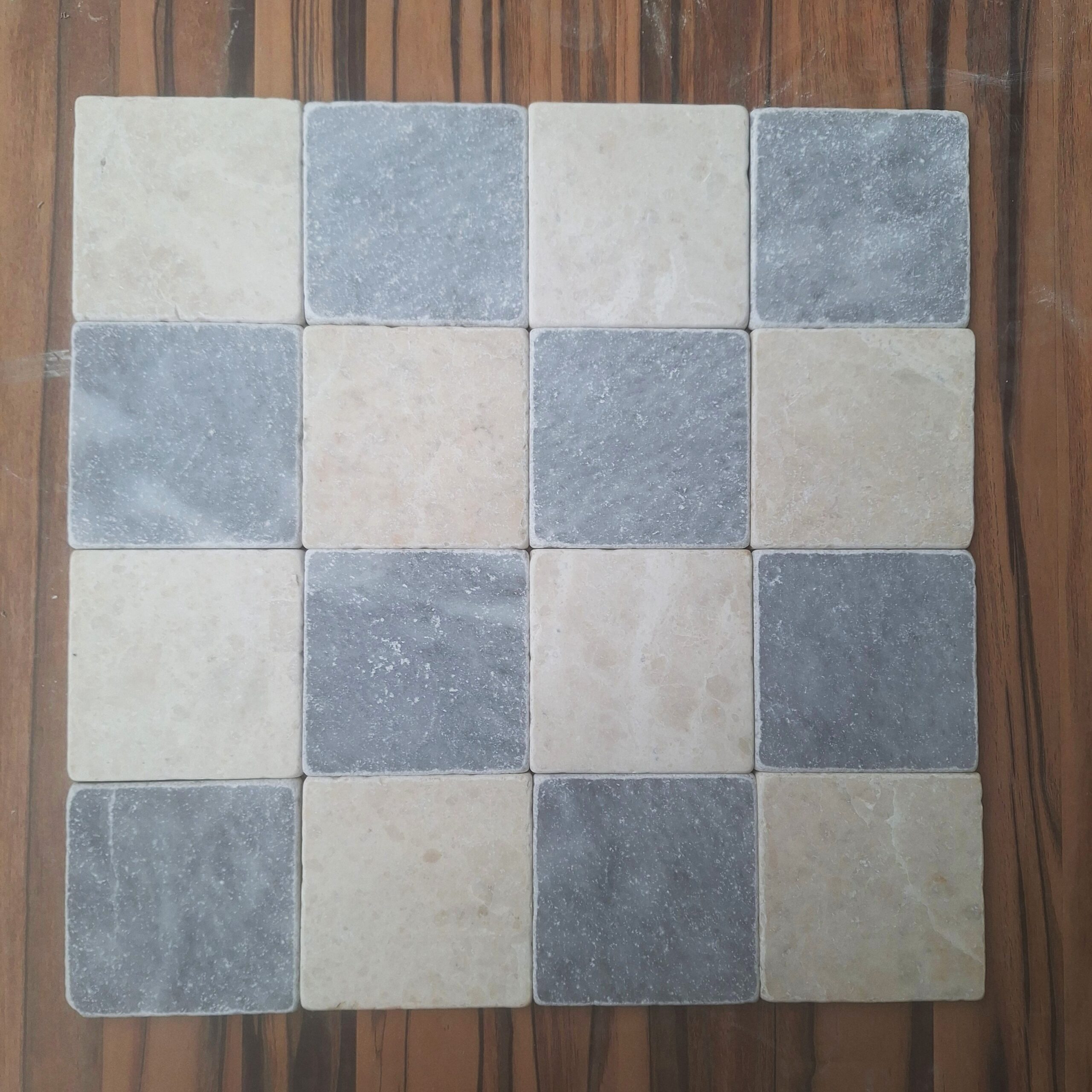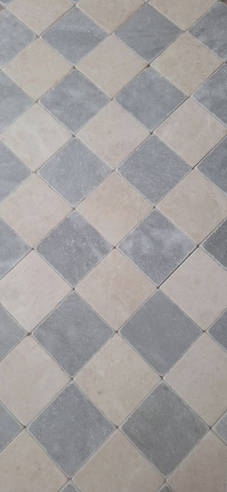 Dambord beige en blauwgrijs marmer anticato 10x10x1