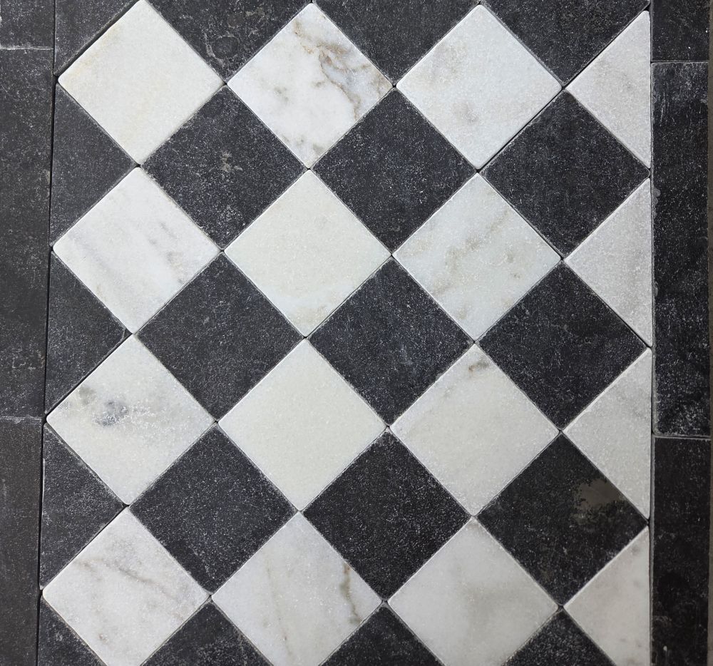 Dambord wit marmer en donker hardsteen 10x10x1