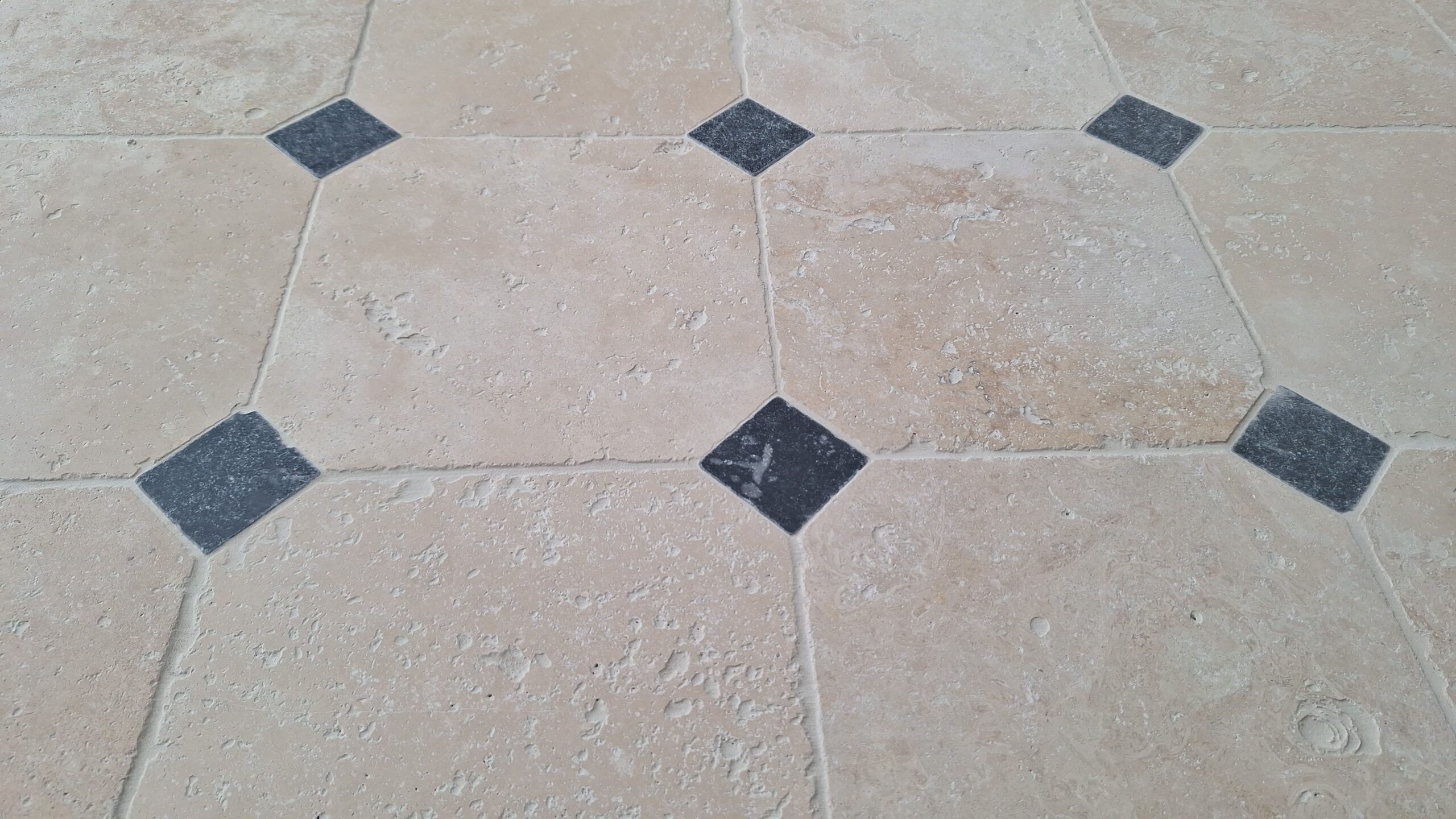 Light travertin 20x20x1 / 4.8×4.8×1 octagon vloer/wandtegel