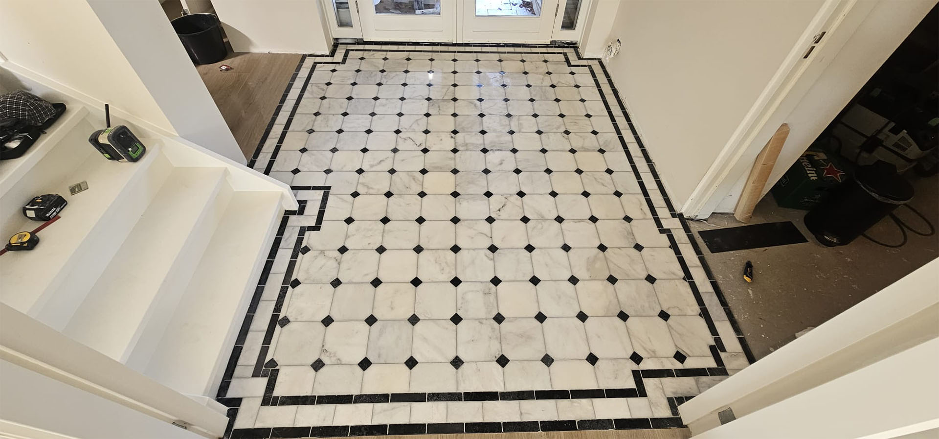 Wit en zwart marmer 20x20x1 / 4.8×4.8×1 octagon vloer/wandtegel